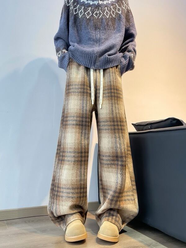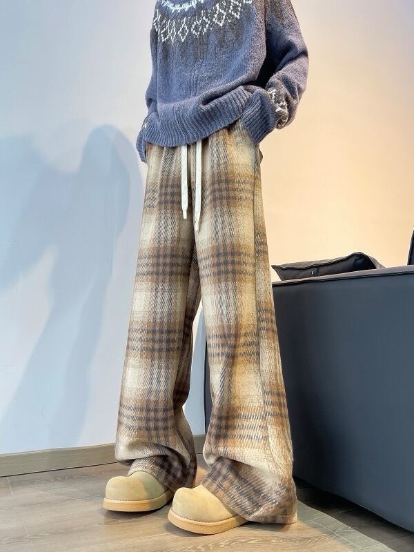 パンツ ボトムス ズボン ウールライク 格子柄 チェック柄 メンズ